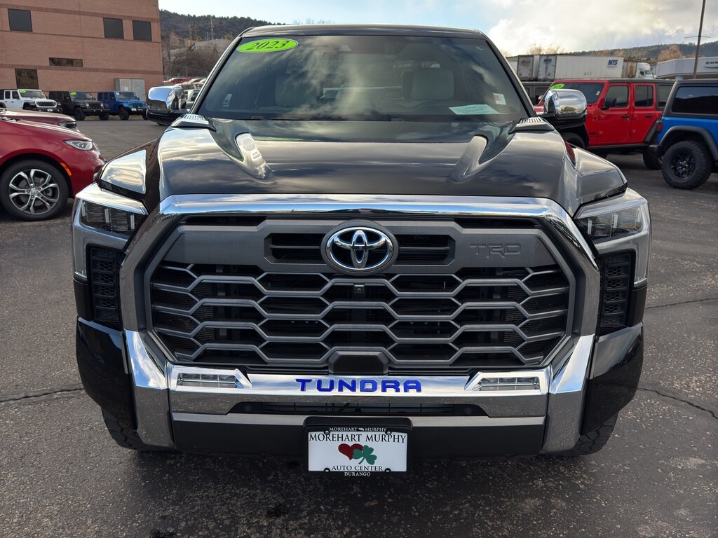 Good News! This certified CARFAX 1-owner vehicle has only had one owner before you. The Toyota Tundra Hybrid has a clean CARFAX vehicle history report. This 1/2 ton pickup has a V6, 3.5L high output engine. This 2023 Toyota Tundra Hybrid has four wheel drive capabilities. The installed navigation system will keep you on the right path. This vehicle offers Android Auto for seamless smartphone integration. Apple CarPlay: Seamless smartphone integration for this 1/2 ton pickup - stay connected and entertained on the go! The Toyota Tundra Hybrid warns of approaching vehicles with Cross-Traffic Alert. It features cruise control for long trips. Bluetooth technology is built into this model, keeping your hands on the steering wheel and your focus on the road. This 2023 Toyota Tundra Hybrid is pure luxury with a heated steering wheel.